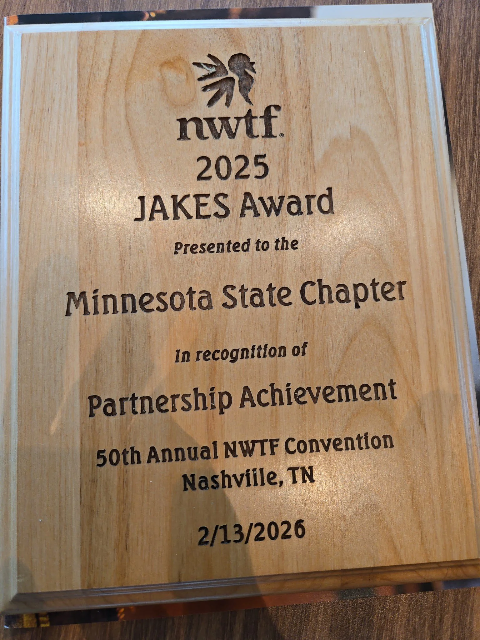 Partnership award presented on 02-13-26 at the NWTF convention in Nashville TN.
